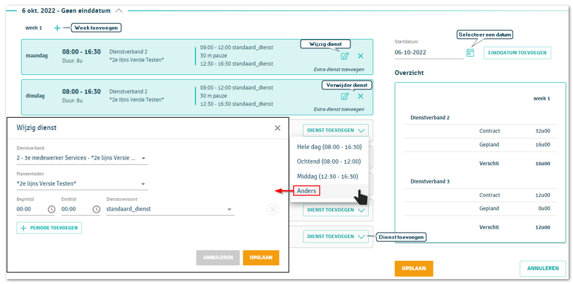 Bij Anders zijn het Dienstverband, de Planeenheden en de periodes door de medewerker zelf in te stellen.