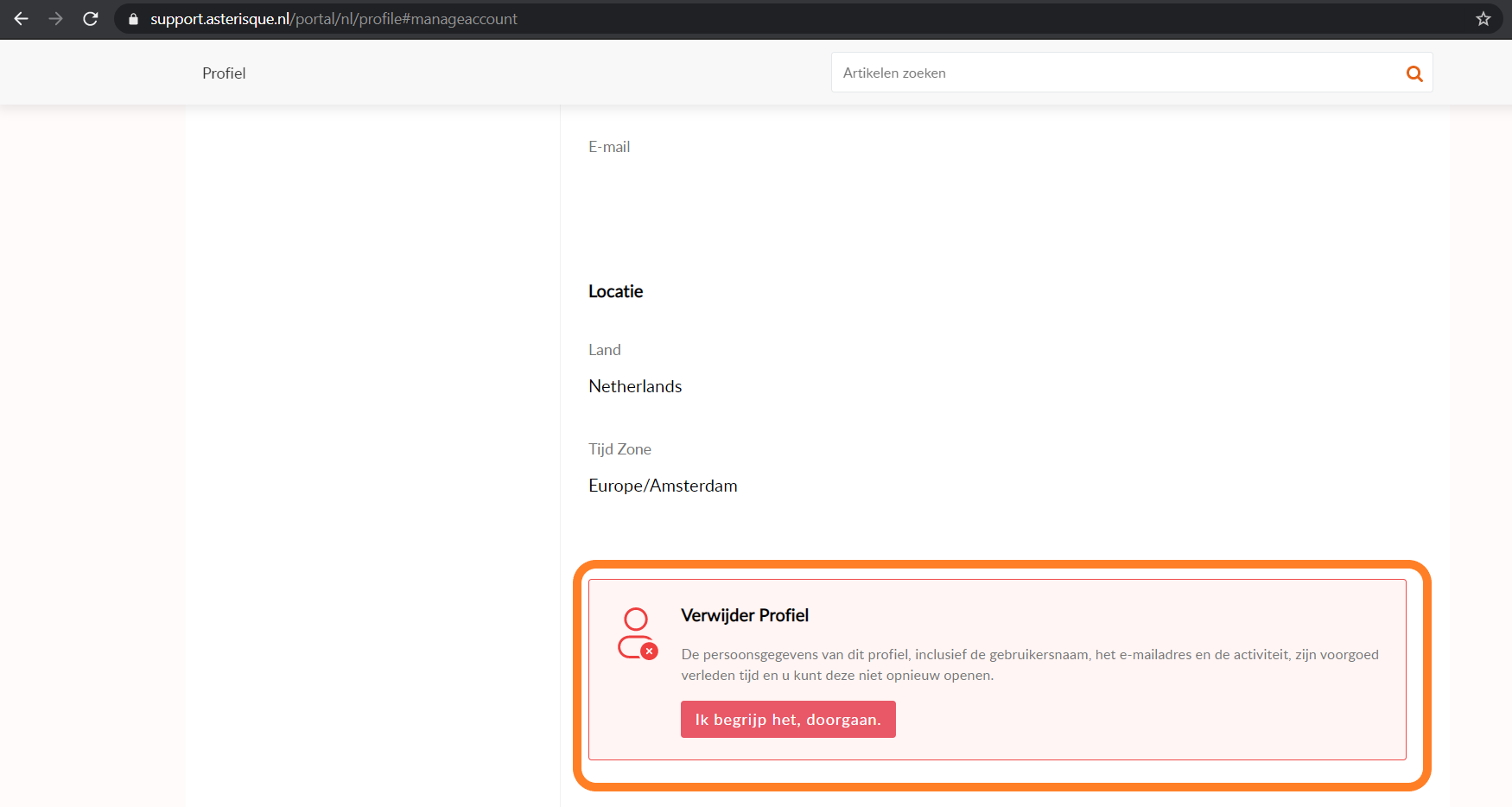 Door onderaan op de pagina op ik begrijp het, doorgaan te klikken worden de gegevens van uw profiel verwijderd.