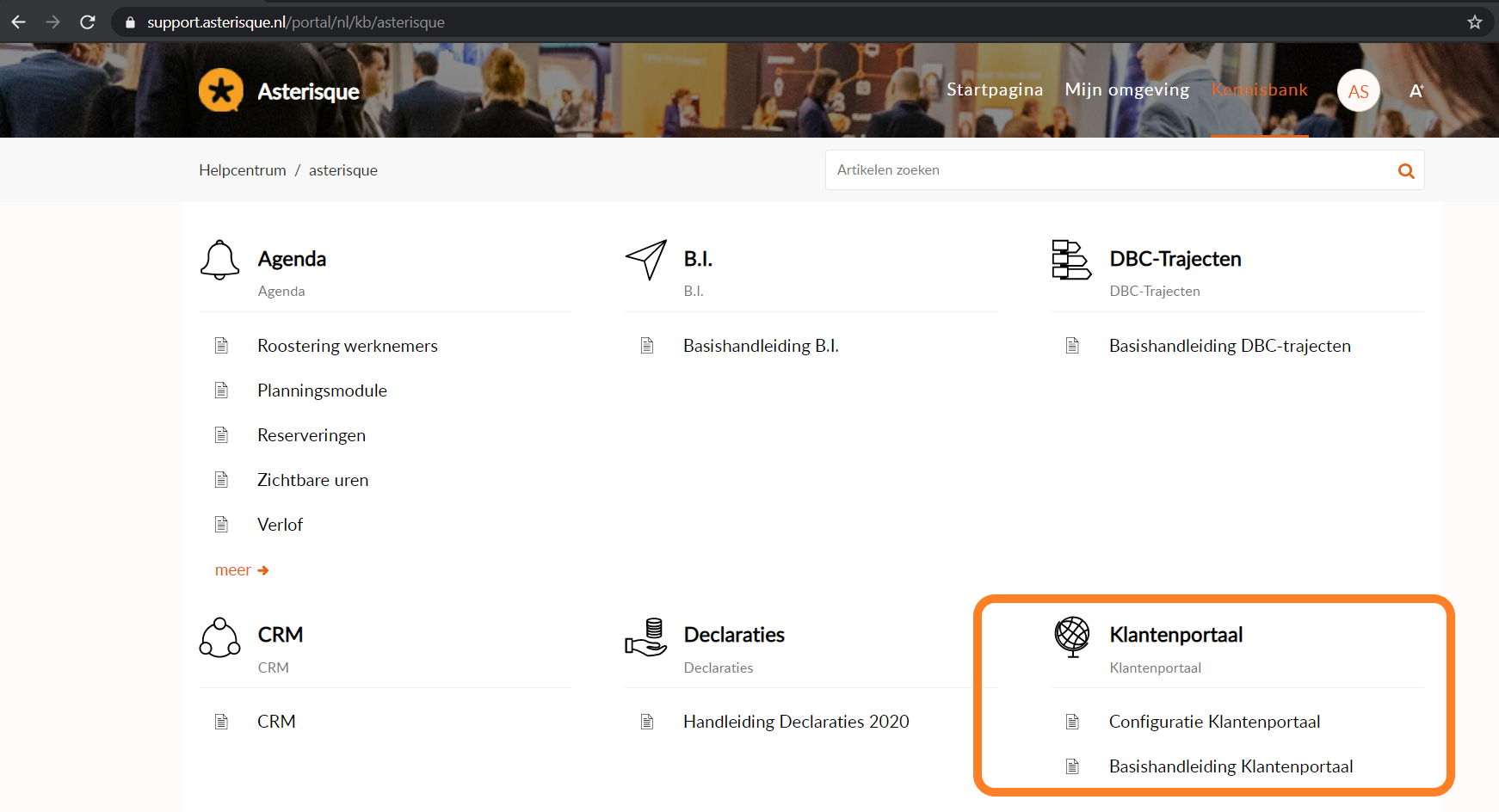 het klantenportaal in te stellen via de instellingen in Asterisque.
