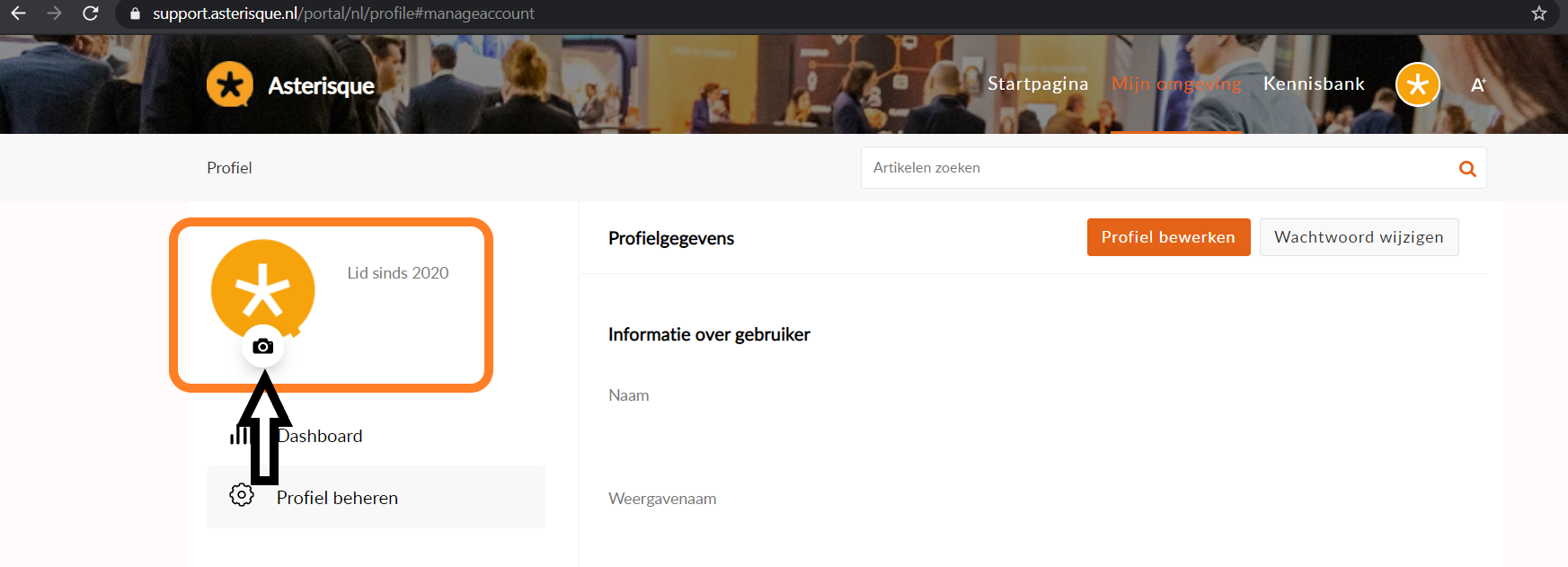 Door op het camera icoon te klikken kunt u een afbeelding uploaden.
