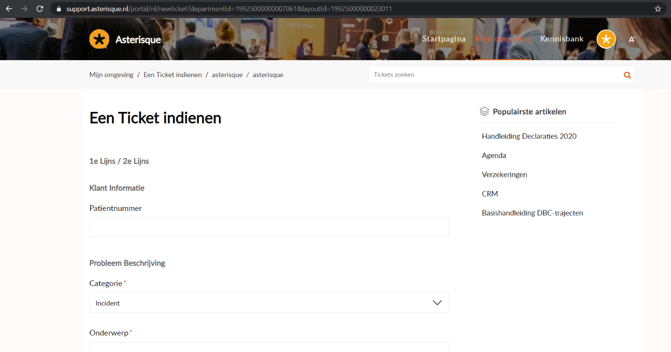 *Een ticket in te geven richting onze helpdesk via Tickets