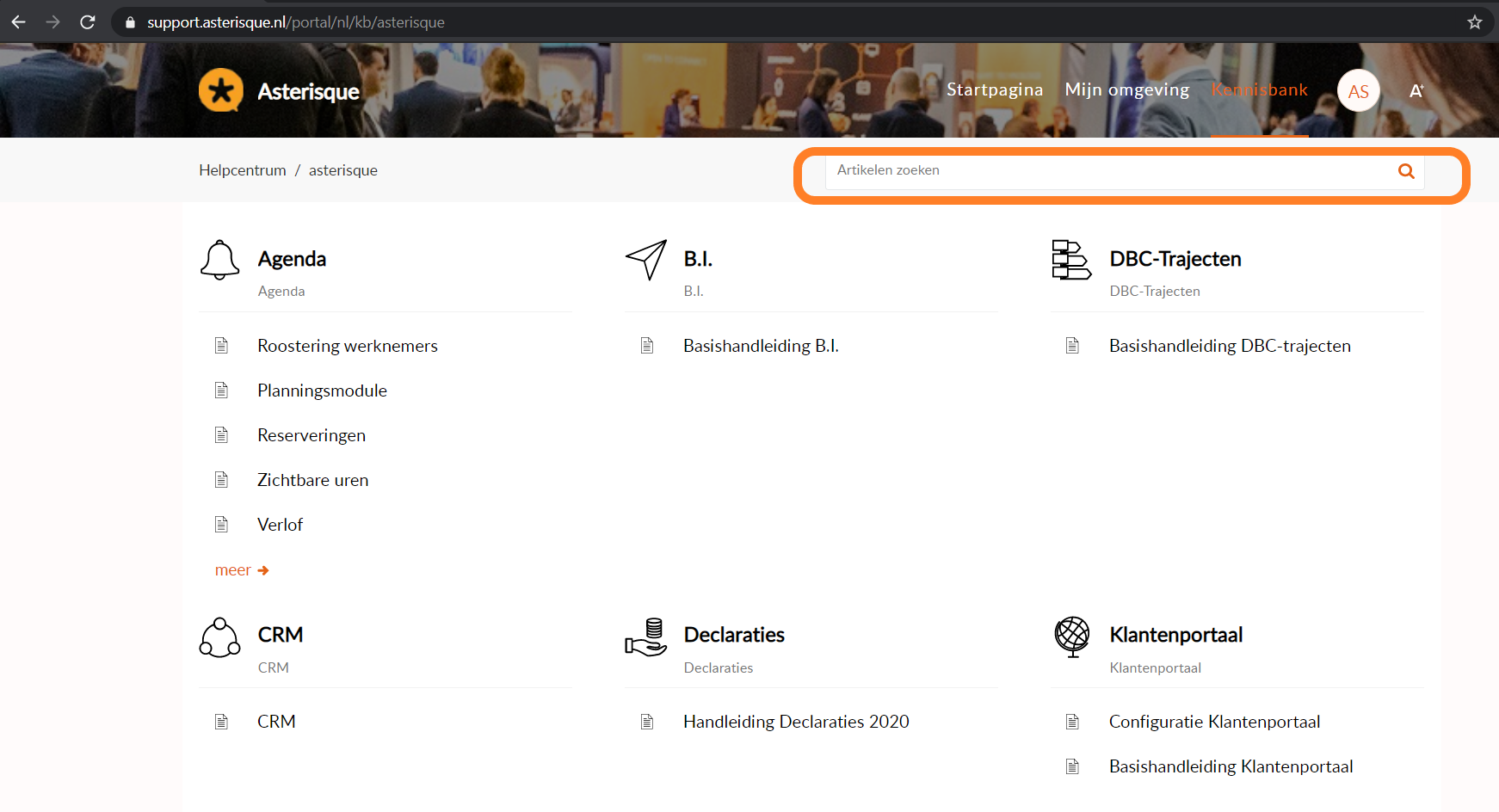 Mocht u de gewenste informatie niet meteen zichtbaar hebben, kunt u via de zoekfunctie de gewenste informatie opzoeken.
