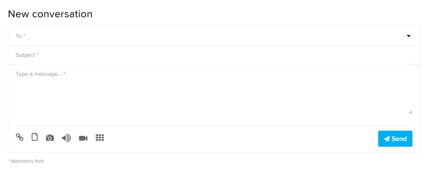 You can add an attachment of up to 250MB to your message. Below the text field, you will see the buttons: