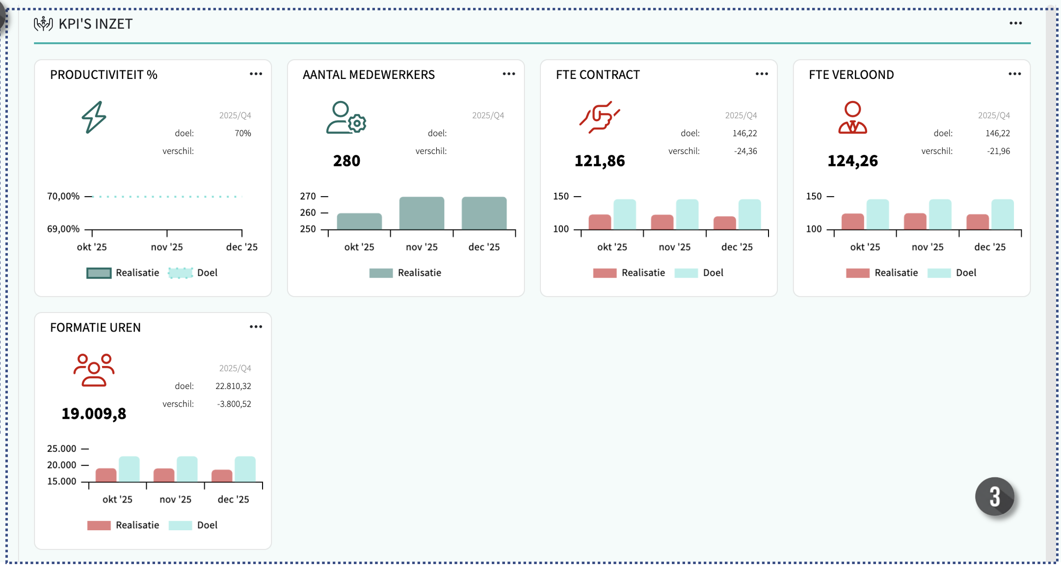 - Een realisatiecijfer: dit cijfer wordt berekend op basis van de data die jouw organisatie dagelijks produceert.
