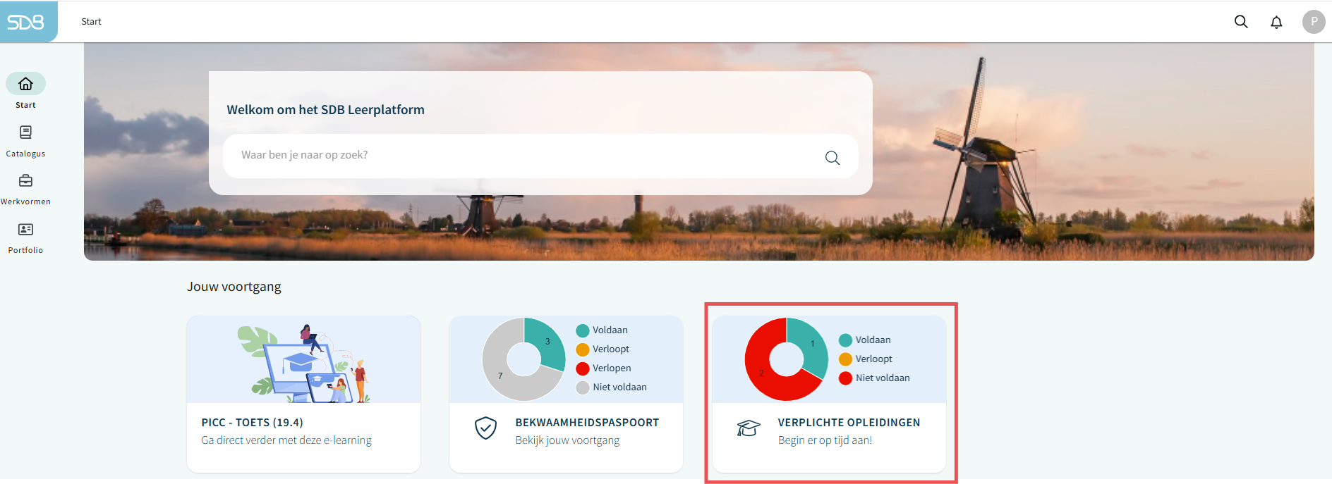Of klik in het dashboard op de tegel verplichte opleidingen.