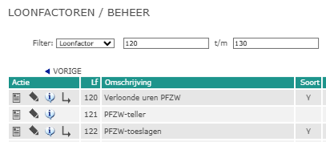 worden. Daarna zijn knoppen beschikbaar om loonfactoren van links naar rechts