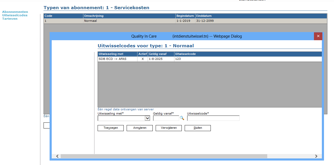Binnen het stambestand Abonnementen is het mogelijk om uitwisselcodes aan te maken.