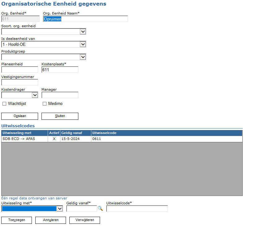 Binnen het stambestand Organisatorische Eenheden is het mogelijk om uitwisselcodes aan te maken.