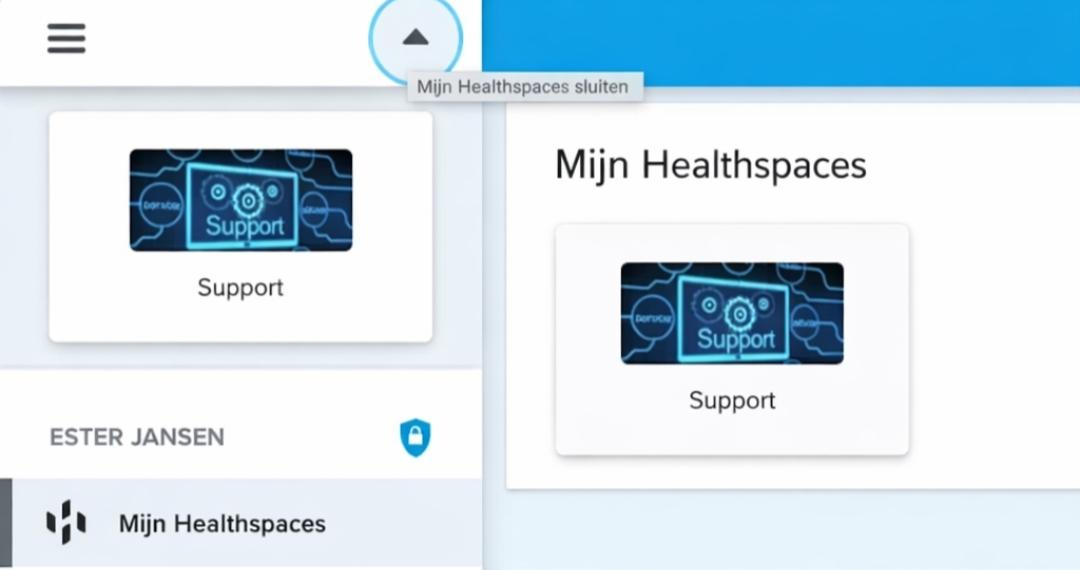 U navigeert naar de juiste Healthspace met de naar beneden wijzende pijl bovenaan het linkermenu, of via de knop Mijn Healthspaces in het linkermenu. Hier vindt u een overzicht van al uw Healthspace-lidmaatschappen.