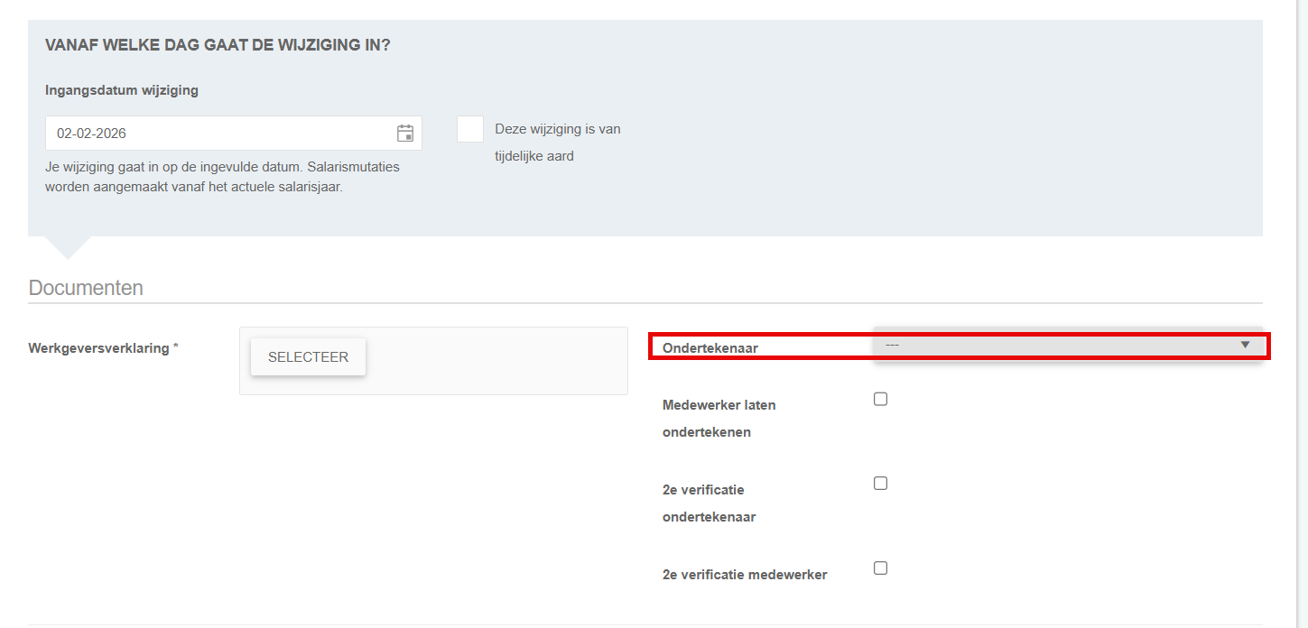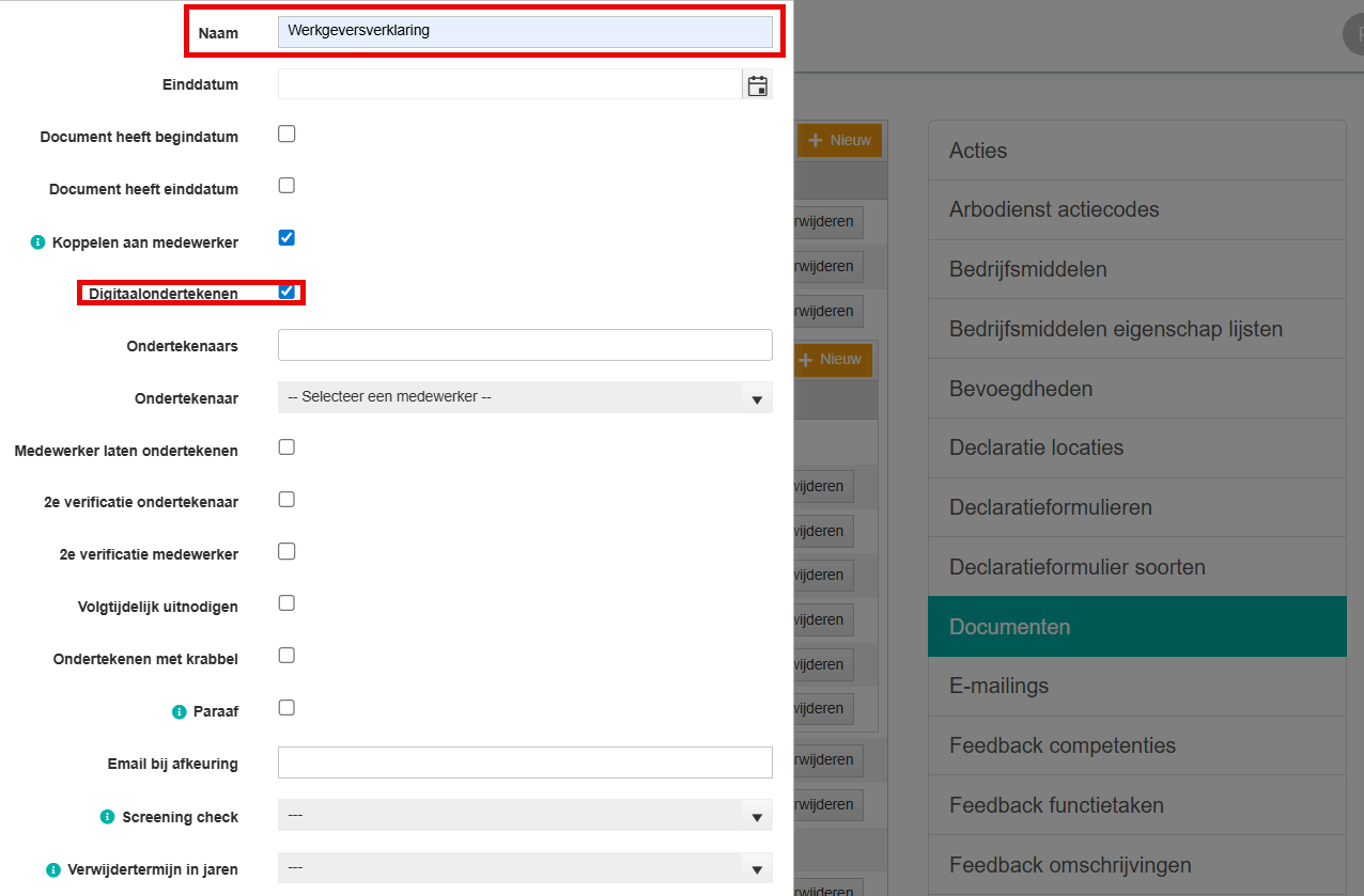 Let op. Je vinkt medewerker laten ondertekenen hier niet aan.