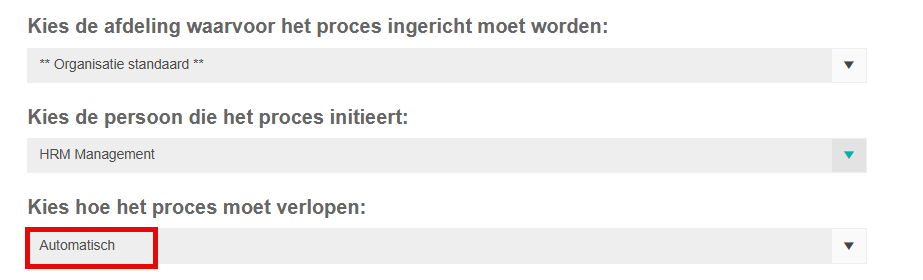 Maak een automatisch proces Werkgeversverklaring aan. De medewerker hoeft niet opgenomen te worden in het proces, want deze hoeft niet te tekenen.